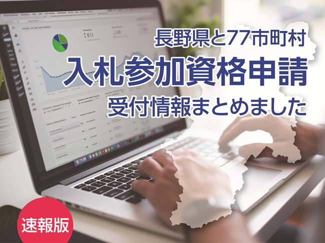 2025年12月25日までに公開された県・市町村等の「入札参加申請提出要領」を速報版として一覧化しました。 トップページ下段のカテゴリ「オススメ」に『入札参加申請』欄を常設していますので、そちらから一覧表のPDFデータをダウンロードしてください。 昨年と同様に、県と共同受付に参画した34市町村の窓口と単独受付を継続する市町村を区分け、受付期間、有効期間、問い合わせ先など、入札参加申請に必要な項目を記載しています。今後の申請資料としてご活用ください。 記載の内容にご不明な点がございましたら、下記問い合わせまで。 【問い合わせ先】 新建新聞社 新建JOHO編集課 026-234-1116